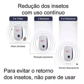 - O Repelente eletrônico deve ficar ligado 24h por dia, tendo resultados às 48hs de uso contínuo;