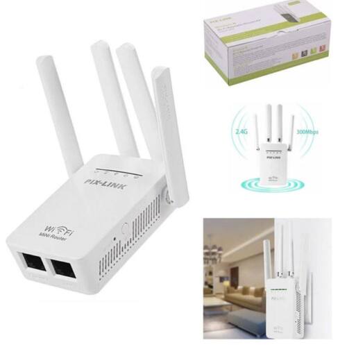 Repetidor Expansor de Sinal Wireless Roteador Pix-Link Chega de ficar refém de sinal de internet perto do roteador O Repetidor de Sinal Wifi Pix Link LV-WR09O é um potente aparelho que resolve o problema de sinal Wireless na sua casa ou escritório, basta ligá-lo e conectar ao sinal wifi já existente e todos os ambientes estarão cobertos com sinal no máximo de potência. Possui quatro antenas externas de apoio 2.4 GHz, WiFi de alta velocidade até 300 Mbps, com uma área de cobertura de até 50 metros, amplia e fortalece o seu sinal sem fio, eliminando zonas mortas causadas por interferências de outros dispositivos, cabos e paredes de alvenaria. O Repetidor de Sinal Wifi Pix-Link LV-WR09 te permite desfrutar da liberdade sem fio em qualquer lugar ao redor de sua casa ou trabalho. Se quiser, você pode usar também na função roteador, basta conectar o modem ADSL na porta internet RJ45 e configurar a rede Wi-Fi. Chega de ficar preso em um só lugar, amplifique a sua rede Wi-Fi e tenha a liberdade de usar a internet onde você quiser. Conecte com vários dispositivos Equipado com uma porta ethernet 10/100 Mbps que permite que o extensor possa atuar como um adaptador sem fio para conectar dispositivos com fio, como por exemplo Xbox, PC ou etc. Segurança de Rede Para garantir a segurança da sua rede, basta pressionar o botão WPS, e você pode conseguir a criptografia sem fio, impedindo que outros invadam a sua rede e mantém defesa ativa contra ameaças de sistemas maliciosos que buscam brechas para roubar dados. Mais Estabilidade no Sinal Seu design inteligente ajuda na de dissipação de calor em ambos os lados, agora a refrigeração do aparelho ficou muito mais eficiente, mantendo sempre a estabilidade do equipamento ao longo do dia, além de melhorar a sua vida útil. Especificações Técnicas Taxa de sinal: 2.4 GHz, 300 Mbps Potência de transmissão: menos de 20dBm Área de cobertura: interior: 30 m, ao ar livre: 50 m Interface: porta WAN, porta LAN 1x10/100 Mbps Segurança sem fio: suporte 64/128 bit WEP, WPA-PSK/WPA2-PSK, 802.1x Temperatura de armazenamento:-40-70 Deg. C Temperatura de operação: 0-40 Deg. C Fonte Automática Bi-volt 100230v Entrada: AC 100-240 V, 50/60Hz Saída: 5 V/1A Tensão: 110/220v Marca: Pix Link Modelo: LV-WR09 Suporta WPS: Sim Tipo: Com fio Wi-fi Suportados Freqência: 2.4g Taxa de Transferência De fio: 10/100 Mbps Sem fio: sim Peso do pacote: 0.267 kg Tamanho do produto L x W x H : 18.30 x 6.10 x 3.00 cm Função: VPN Portas LAN: 1 Supports WDS: Não Supports WPS: Sim Itens Inclusos 1 Repetidor de Wifi 4 antes LV-WRR09 1 Adaptador de Carregador 1 Cabo de Rede RJ45 1 Manual Dúvidas Frequentes - É Bivolt e Sem Fio Sim Suporta 110 e 220 volts. - O produto é resistente Trabalhamos apenas com produtos com material de altíssima qualidade, durabilidade e procedência. Homologação Anatel: 109062214103