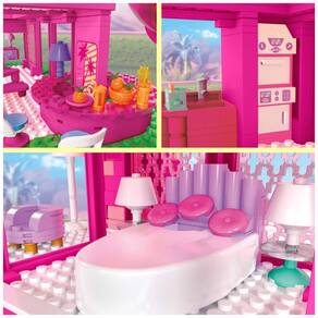 Passe um dia com Barbie e Ken em uma réplica da icônica DreamHouse, como vista no filme Barbie. Este conjunto de construção para colecionadores inclui 1.795 peças e peças que permitem a construção de uma casa de três andares completa com cozinha, bar, quarto, spa e muito mais. Além disso, o conjunto traz acessórios de moda, comida e piscina. As 4 microbonecas montáveis incluem 1 Barbie, 1 Ken e 2 manequins de moda. As peças combinam com todos os brinquedos de construção MEGA e Barbie e são compatíveis com outras marcas.