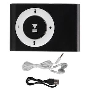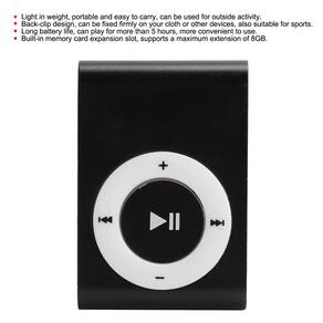 Reproductor MP3 mini portátil, incluye audífonos y cable USB. Mini reproductor MP3 con clip trasero ideal para correr y deportes (Negro).