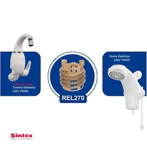 Resistência 220v 7000w linha eletrônica bege - Produto genuíno para duchas e torneiras eletrônicas. Compátivel com os produtos sintex: Ducha eletrônica 220v 7000w; Torneira eletrônica 220v 7000w. Encaixe rápido e fácil; Dispensa o uso de ferramentas. Maior durabilidade do componente; Fabricado com materiais de alta qualidade. Código - descrição do produto: rel270 Resistência eletrônica 220v 7000w de produto: 90 dias após a compra Características gerais do produto: Material: plástico Acompanha o produto: 1 resistência eletrônica 7000w sintex : 3 meses do fabricante Marca: Não Informado Ean: 7896697804136
