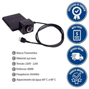 - A Resistência Elétrica Tramontina para Rechaud 220V 400W, possui um termostato que mantém a temperatura de aquecimento da água na faixa de 80 C a 90 C e evita o superaquecimento, caso ocorra falta de água na cuba externa.
