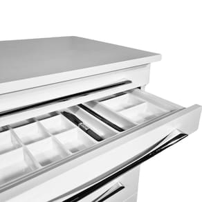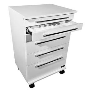 5 (cinco) gavetas. Ter cinco gavetas em uma mesa auxiliar oferece um excelente aproveitamento de espaço, permitindo a organização eficiente de materiais e documentos. As gavetas proporcionam fácil acesso a itens essenciais, mantendo o ambiente arrumado e funcional. Além disso, essa quantidade de compartimentos facilita a separação de diferentes categorias de objetos, promovendo maior praticidade no dia a dia e otimizando o tempo de trabalho em consultórios e clínicas.