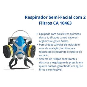 Características do Produto - Material: Elastômero sintético atóxico, proporcionando maciez e conforto. - Filtros: Acompanha dois filtros químicos Classe 1, eficazes contra vapores orgânicos e gases ácidos. - Válvulas: Duas válvulas de inalação e uma de exalação, facilitando a respiração. - Fixação: Tirantes elásticos com regulagem de pressão em quatro pontos, assegurando ajuste firme e confortável. - Certificado de Aprovação (CA): 10463, atendendo às normas de segurança vigentes.