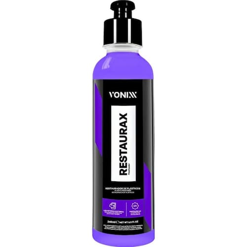 O Restaurax Restaurador e Renovador de Plástico da Vonixx é a solução ideal para quem busca revitalizar e proteger as superfícies plásticas do seu veículo. Com uma fórmula avançada, este produto proporciona um acabamento brilhante e duradouro, realçando a beleza do seu automóvel. MODO DE USO: 1. Limpar bem a superfície e em seguida aplicar o produto com um aplicador de espuma até a completa restauração. Se necessário, repetir a operação. 2. Para manter o plástico sempre novo, repetir a aplicação do produto a cada 60 dias na parte externa e a cada 6 meses na parte interna. A NR Estética oferece uma de 7 dias em seus produtos