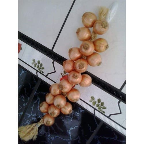 Restia ou Trança de Cebola Artificial para Decoração, produzida artesanalmente com técnicas de moldagem com ráfia de sopro sobre uma bola de isopor, pintado com verniz vitral e acabada com verniz acrilico. A cebola tem raízes de musgo seco e é amarrada a uma trança de corda de sisal. A peça é leve e pode ser pendurada até em ganchos adesivos, protegida do calor intenso, chuva e sol. Indicada especialmente para decoração de ambientes gourmets, como áreas de churrasqueiras, cozinhas, na decoração de restaurantes e pizzarias, em pousadas e chalés, casas de sítios e também urbanas, salão de festa e cenários. Produto versátil, com aspecto rústico e que fica muito bem em ambientes onde se deseja um toque de nostalgia, combinando perfeitamente em espaços gourmet.
