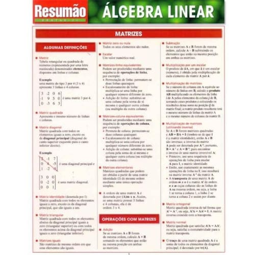 Matrizes: definições (matriz, matriz quadrada, matriz diagonal, matriz identidade, matriz triangular, matrizes iguais, matriz zero ou nula, escalar, matrizes linha-equivalentes, matrizes coluna-equivalentes, matrizes elementares). Operações com matrizes: adição, subtração, multiplicação por um escalar, multiplicação de matrizes, matriz ortogonal, matriz normal. Matrizes complexas. Propriedade das matrizes. Equações lineares. Determinantes. Vetores: norma de um vetor, operações com vetores, propriedades e teoremas de vetores. Resolução de sistemas lineares através de matrizes. Retas.