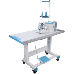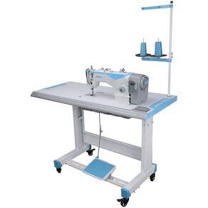 Como é enviado o produto: Enviamos a máquina pela transportadora, onde irá receber em dois volumes: Primeiro Volume – Máquina REGULADA E REVISADA com direct drive acoplado, suporte de linhas desmontado Segundo Volume - Bancada DESMONTADA, composta por: Tampo de madeira revestida em fórmica impermeável e estante de ferro pintado por imersão com rodinhas.