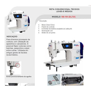 CARACTERISTICAS: Para diversos processos de costura, com utilização de aparelhos e calcadores. É possível fazer costuras como: bainhas, pespontos e zíper, entre outras. Utilizada em artigos gerais de tecidos leves/médios. INDICAÇÃO Descrição: Motor Direct Drive Painel de controle Enchedor de bobina acoplado ao cabeçote Iluminação Led Botão de um ponto Envio por trnasportadora montagem do pé de ferro por conta do comprador
