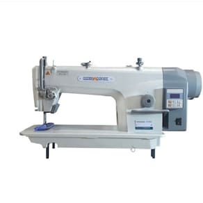 Máquina Reta Industrial uma agulha, ponto fixo com motor direct drive, posicionamento de agulha superior e inferior, velocidade de 5000 pontos por minuto com baixo ruído, executando costuras com ponto de 5mm e lubrificação automática. Ideal para tecidos leves e médios. Motor direct drive capaz de economizar até 60% de energia comparado com motores convencionais, além de garantir maior agilidade na produção, com parada superior e inferior.