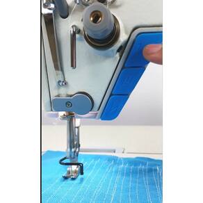 Maquina de costura reta 1 agulha eletrônica Direct Drive com, levantador de calcador controlado por motor de passo, corte de linhas, posicionador de agulha, caça fio eletromagnético, botão de reset no painel, sistema inteligente de transporte e calcador para costurar tecidos leves, sistema de cooler na polia para resfriamento, lançadeira padrão, painel e control box embutido no cabeçote, com sistema de meia pontada, ponto condensado controle de luminosidade da luz de LED com 3 estágios, de 5.000RPM, tamanho do ponto de 5MM, com estante equipada com rodinha. Versão 220 volts.