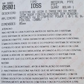 Retentor Flange Virabrequim Sabó 05801 IOSS VW Fox Gol 2006 em diante Roda Dentada Traseiro Sem Sensor