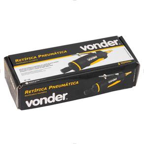 Ref.: 6256000140. Marca: Vonder. Modelo: RP140. Consumo de ar: 4,5 pcm (pé³/min). Pressão de trabalho: 90 lbf/pol². Medida da pinça: 1/4pol. - 6,35 mm. Rosca de entrada de ar da retifica: 1/4pol. NPT interna (fêmea). Rotações por minuto (rpm): 22.000/min. Comprimento: 190 mm. Massa aproximada (peso): 0.75 kg.