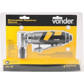 1 Retificadeira pneumática angular, acompanha: 1 pinça 1/4", 1 pinça de 6 mm, 1 pinça 1/8", 1 conector para engate rápido, 2 chaves fixa e 1 compartimento de óleo
