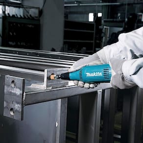 Retificadeira reta indicada para uma diversidades de trabalhos como: Realizar cortes rápidos e precisos, lixar qualidade superior de acabamento, desbastar e afiar, limpar e polir mesmo nos lugares mais difíceis, esculpir e gravar com alto nível de detalhamento e precisão entre outras coisas conforme esteja com a ferramenta certa e sua imaginação alcançar. Possui ventoinhas desenhadas para direcionar o ar em direção contrária à do operador e botão liga/desliga na parte traseira.