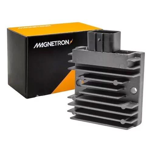 O Retificador (regulador) da Magnetron é desenvolvido com materiais de alta qualidade, resistência, rigidez e um ótimo acabamento. O regulador retificador tem a função de transformar a corrente alternada em contínua, regular a tensão para carregar a bateria e alimentar o sistema elétrico da motocicleta.