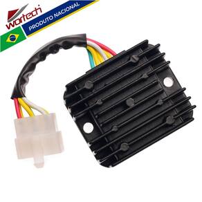 Marca: Wortech (Indústria Brasileira)Código:W-4504106/125Características do produto: - Tecnologia: Tiristor com circuito Shunt - Potência Máxima: 320W- Tensão de saída: 14,6 a 14,8V- Amperagem: 25A- Conector: Em Nylon de alta qualidade- Terminais: metálicos estanhados de alta condutividade - Dissipação: Carcaça em alumínio com alto poder de refrigeração- Dimensões da carcaça (Altura x Largura x Comprimento): 27 x 77 x 74 mm- Distância entre os furos: 64 mm - Espessura da parte de fixação: 4 mm Conexões:- 01 > Conector 6 vias com cabos de 110 mm Itens Inclusos:- 01 > Regulador Retificador- 01 > Certificado de garantia - Garantia total de 12 meses Marca: Wortech