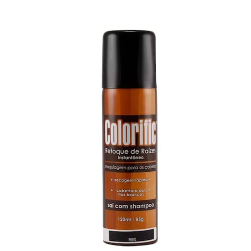 O Retoque Capilar Colorific Spray Preto 120ml é uma maquiagem para os cabelos que permite o retoque instantâneo de raízes, disfarçando os cabelos brancos e possibilitando que as aplicações de colorações químicas sejam mais espaçadas, reduzindo seus efeitos indesejáveis. Esse produto eficiente foi criado para atender a necessidade de retocar raízes brancas que surgem poucos dias após ter colorido os cabelos ou para situações em que você ainda não teve tempo de fazer o retoque com sua coloração.