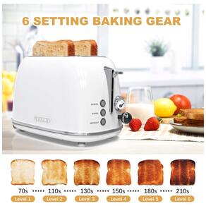 Ranhuras extra largas de Com 2 ranhuras extra largas de , a torradeira cremosa pode lidar facilmente com tudo, desde pão em fatias grossas a bagels. Ele vai aparecer sozinho após terminar de torrar, e pode preparar o café da manhã com facilidade.