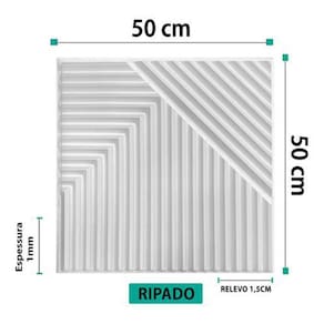 Revestimento 3d Plastico Pvc Decoracao Luxo Kit 10m Ripado Quantidade do anuncio: 10m 40 placas Modelos: RIPADO Todas as placas são da cor branca As placas são de poliestireno PSAI plástico Tamanho: 50x50cm exceto modelos piramidal e prisma 48x 48cm Espessura: 1 mm