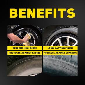 - Acabamento de longa duração: a tecnologia avançada de resina produz um acabamento duradouro que mantém um acabamento brilhante e rico. O spray para pneus oferece apelo visual duradouro e brilho impecável em casa, em eventos ou na estrada.