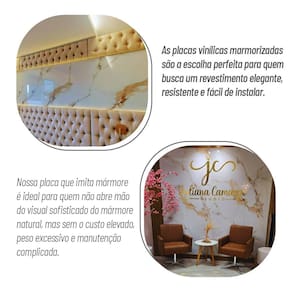O Revestimento Decorativo Premium Placa Marmorizada Bianco Oro oferece o visual sofisticado do mármore natural, sem o custo elevado, peso excessivo e manutenção complicada. Com acabamento polido e espessura de apenas 0,3cm, esta placa flexível é leve, fácil de instalar e pode ser recortada com um simples estilete.