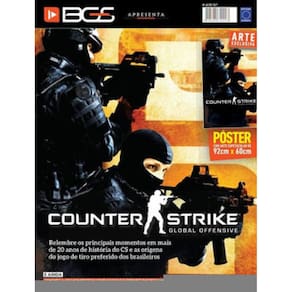 PÔSTER GIGANTE COM ARTE ESPETACULAR DE 92 CM X 60 CM Counter Strike Global Offensive Relembre os principais momentos em mais de 20 anos de história do CS e as origens do jogo de tiro preferido dos brasileiros. E ainda: Conheça os momentos lendários do esport imortalizado por meio de grafites nos mapas.