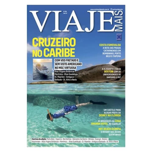 Cruzeiro no CaribeCom voo fretado e sem visto americano no MSC Virtuosa.- Ilhas Virgens Britânicas- Martinica- Ilhas Guadalupe- St. Maarten- Antígua e Barbuda- St. Kitts e NevisVeja também nesta edição:- Costa Esmeralda: A rota das praias catarinenses em Bombinhas, Porto Belo e Itapema.- A elegante e culta Boston com as universidades de Havard e MIT.- Um castelo para alugar perto da Disney na Flórida.- As novidades do Casa Grande Hotel, no Guarujá.- Hot Beach Olímpia, o resort das águas quentinhas.Destinos da edição: Porto Belo, Itapema, Bombinhas, Balneário Camburiú, Olímpia, Guarujá, Boston, Kissimmee, Ilhas Virgens Britânicas, Martinica, Ilhas Guadalupe, St. Maarten, Antígua e Barbuda e St. Kitts e Nevis.