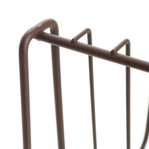 Características: Dimensões: Com medidas de 31,5 x 54 x 76 (CxLxA), este revisteiro compacto e espaçoso oferece espaço suficiente para armazenar suas revistas favoritas de forma organizada. Material de Qualidade: Fabricado em aço com pintura eletrostática, garante durabilidade e resistência, mantendo seu revisteiro em ótimo estado por muito tempo. Cor Marrom: A tonalidade marrom adiciona elegância e sofisticação ao ambiente, harmonizando com diferentes estilos de decoração. Fácil de Limpar: Para manter o revisteiro sempre impecável, basta utilizar sabão ou detergente neutro com esponja macia. Evite o uso de solventes, objetos cortantes ou abrasivos para preservar a qualidade do produto.