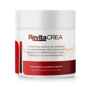 Revita Crea 300g - Padrão: Único Revita Crea 300g Revita CREA é um suplemento alimentar da Revita Nutrition, formulado para auxiliar na performance dos treinos, aumentando a força e contribuindo para o ganho de massa muscular. com creatina monoidratada como ingrediente principal, Revita CREA também ajuda no combate à fadiga, melhora o metabolismo e as funções cognitivas. ideal para quem busca otimizar seus resultados na academia e alcançar um desempenho físico superior. benefícios: - Auxilia na performance dos treinos com o aumento da força.- Contribui com o aumento da massa muscular.- Auxilia no combate a fadiga, melhora do metabolismo e funções cognitivas. Marca: Não Informado