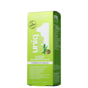 O Leave-in Revlon Uniq One Green Tea possui fórmula vegana que auxilia no reparo de cabelos danificados e secos, além de controlar o frizz e prevenir o surgimento de pontas duplas. Também ajuda a condicionar, desembaraçar e fortalecer as madeixas, evitando assim a quebra.