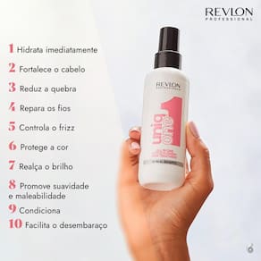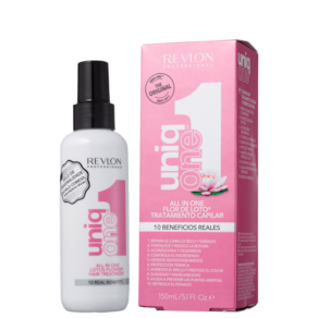 O Leave-in Revlon Uniq One Lotus sua fórmula é vegana e ajuda a fortalecer e reduzir a quebra, o que permite reparar cabelos secos e danificados. Também protege a cor, realça o brilho e deixa os fios maleáveis e suaves.