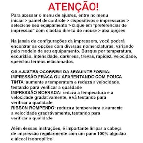 O Ribbon Inkanto AWR1 Cera 110mm x 74m é, de fato, uma fita de cera altamente competitiva da renomada linha Inkanto. Com sua alta sensibilidade, essa fita permite a impressão com níveis reduzidos de energia, resultando em menos pressão sobre o cabeçote de impressão. Essa característica faz do AWR1 a solução ideal para aplicações que exigem uma combinação equilibrada de qualidade e preço, atendendo a todas as necessidades de impressão de etiquetas padrão. A tinta utilizada no Ribbon AWR1 é especialmente formulada para ser adequada a aplicações de etiquetagem padrão. Além disso, é compatível com a maioria das etiquetas em branco e pré-impressas disponíveis no mercado, o que torna essa fita uma escolha versátil para diversos projetos. Essa ampla compatibilidade permite uma maior flexibilidade na escolha das etiquetas a serem utilizadas, garantindo conveniência para os usuários. Um dos principais benefícios do Ribbon AWR1 é a baixa energia necessária para transferir a tinta para o substrato. Essa característica não apenas ajuda a preservar a qualidade de impressão, mas também desempenha um papel importante na proteção do cabeçote de impressão, prolongando sua vida útil e reduzindo os custos de manutenção. Com o AWR1, você pode contar com resultados de impressão nítidos e duradouros, sem comprometer a durabilidade do seu equipamento. Como a mais recente adição à linha de fitas de cera da Inkanto, o Ribbon AWR1 destaca-se como uma opção altamente competitiva para conquistar novos negócios na área de etiquetagem padrão. Sua relação imbatível entre qualidade e preço coloca-o em vantagem no mercado, oferecendo aos clientes uma solução eficaz e econômica para suas necessidades de impressão de etiquetas. Com o Ribbon Inkanto AWR1 Cera 110mm x 74m, você está adquirindo uma fita confiável, de alta qualidade e projetada para atender às demandas do mundo da etiquetagem. AS IMAGENS SÃO MERAMENTE ILUSTRATIVAS
