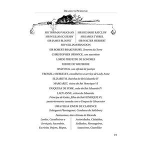 Ricardo III, tragédia histórica de Shakespeare, ambientada no desfecho da Guerra das Rosas, explora os abismos da ambição, traição e manipulação. A narrativa gira em torno de Ricardo, Duque de Gloucester, um vilão astuto e carismático cuja sede de poder o leva a conspirar implacavelmente para conquistar o trono da Inglaterra. Com intrigas engenhosas, ele elimina rivais, manipula aliados e orquestra assassinatos, incluindo o trágico destino de seus jovens sobrinhos, os príncipes na Torre. A inteligência afiada de Ricardo contrasta com sua crueldade, enquanto ele navega por um cenário político traiçoeiro, marcado por conflitos civis e lealdades frágeis. Contudo, sua ascensão meteórica é seguida por uma queda vertiginosa, à medida que inimigos se unem e sua consciência o atormenta. A peça culmina na dramática Batalha de Bosworth, onde Ricardo enfrenta seu destino inevitável. Com diálogos cortantes e uma profunda análise da natureza humana, Ricardo III retrata o poder corruptor e as consequências devastadoras da ambição desmedida, consagrando-se como uma obra-prima do teatro shakespeariano. Marca: Não Informado