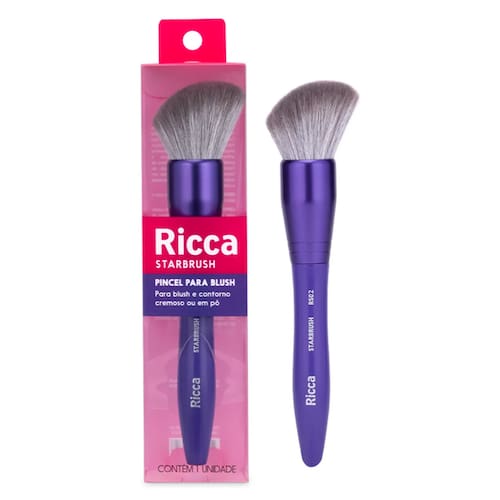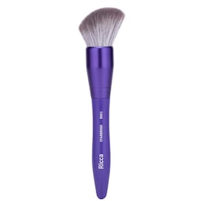 Pincel Ricca Blush Chanfrado Starbrush RS02 com cerdas volumosas e macias que facilitam a aplicação do blush, pó bronzeador, garantindo um acabamento uniforme, sem deixar marcas. Modelo essencial para sua make diária e do tamanho ideal para te acompanhar em todos os lugares, garantindo praticidade e estilo em sua rotina de beleza.