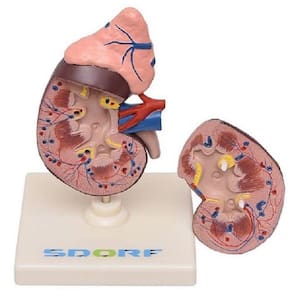 Modelo anatômico de rim em duas partes, confeccionado em PVC, evidencia as estruturas internas e funcionais bem com apresenta a glândula adrenal;O modelo SD-5051 apresenta as seguintes estruturas entre outras:* Margem Lateral; * Margem Medial; * Hilo Renal; * Córtex Renal; * Pirâmide Renal; * Coluna Renal;* Cálices Maiores; * Cálices Menores; * Pelve Renal; * Ureter; * Artéria Renal; * Veia Renal; * Cápsula Renal Superior; * Cápsula Renal Inferior; * Glândula Adrenal;&Ndash; Montado sob base plástica;Acompanha:01 Base plástica;01 Haste;01 Manual em português,01 Termo de garantia.Embalagem: Caixa de papelão.Informação adicionalPeso 0.425 kgDimensões 12 x 12 x 8 cm