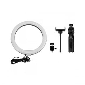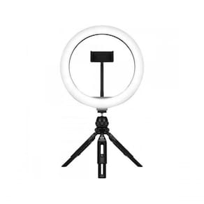 A Ring Light 10 é um modelo leve e versátil que proporciona iluminação ideal para cada ocasião, sendo uma ring light perfeita para streaming, fotografia, gravação de vídeo e muito mais. Ajustável entre 3 modos de temperatura de cores e 10 níveis de brilho. Vem com um tripé ajustável e estável, permitindo o uso portátil. Ilumine os seus conteúdos: Uma quantidade de iluminação pode ser o êxito ou o fracasso dos seus conteúdos. Eleve a sua qualidade de produção com o LIGHT 10 e dê aos seus conteúdos o brilho que eles merecem. Melhore seu aspecto: Embeleze a sua pele e ajuste a luz perfeitamente ao seu tom de pele. Escolha entre 3 modos de temperatura da cor, de 3000K a 6000K. Iluminação intensa e natural: A alta reprodução de cores proporciona uma iluminação rica e intensa para obter cores mais reais e naturais. A LIGHT 10 replica mais de 90% do espectro de cores visíveis que o sol produz naturalmente. Prático controle de iluminação: O controle incorporado ao cabo permite ajustar de forma prática a luminosidade e a temperatura da cor com apenas uma mão. Suporte para montagem de smartphone e câmera: Permite a montagem de vários dispositivos em simultâneo, facilitando a transmissão e gravação com um smartphone e uma câmara ao mesmo tempo. Tripé portátil e dobrável: Inclui um tripé leve, mas robusto que permite uma utilização prática e portátil e proporciona uma estabilidade confiável. Permite ajustar a altura (20 ? 25 cm). Dimensões:26 cm / 10 polegadas Altura tripé: 20cm ~ 25cm Cor:Preta Pesquisa:ring-light|luz|kight-10|ring light|streamplify|stream| - Número de leds: 120 - Consumo de energia (Max.): 10 Watts - Fonte de alimentação: USB, 5V/2A - Brilho (Max): 480 lúmens - Temperatura da cor: 3000K-6000K, ajuste de nível 3 - Nível de brilho: Ajuste de 10 níveis - Modo de controle: Controle de fio - Com Tripé: Sim - Altura ajustável do tripé: 20cm ~25cm - Tamanho de telefone suportado: Suporta smartphone até 7,6cm de largura