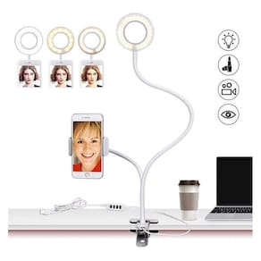 Especificações: - Modelo: Professional Live Stream - Peso: 480g - 3 modos de luz branca, amarela e mista e 9 níveis de brilho - Potencia: 12w - Material: Aço e plástico ABS - Compatibilidade: Largura máxima aproximada do suporte telefone é de 8,6 cm - Conexões: USB 5V