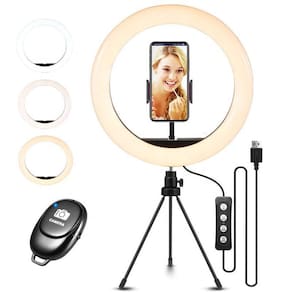 Ring Light 26Cm Luz Selfie Maquiagem Youtuber Tripé Pequeno Uma visão mais brilhante Com esse ring light, suas imagens no instagram e facebook ficarão mais bonitas e charmosas. Por que você precisa de um anel de luz Ele fornece iluminação regulável sem sombras escuras. Quem pode usar o ring light Crianças, adolescentes, adultos, mulheres e homens, jovens e idosos, maquiadores, esteticista, criadores de conteúdo do youtube, tatuadores, blogueiros de vídeo, cabeleireiros / salões, amantes de selfies,facebook live, instagram live, bate-papo instantâneo, iluminação de estúdio, fotografia de retrato e streaming etc. Fornece luz suficiente para iluminar sua pele durante a transmissão , fazendo você parecer mais jovem e tornando a imagem mais nítida ao fazer um vídeo. - fonte de alimentação usb Características Nome da marca: mercapide Número do modelo: akl01 Potência: 24w Tensão: 5v Temperatura de cor: 3000-6000 Dimensão: 10 polegadas 26 cm Peso: 1,2 kg Quantidade de led: 120 Lumen: 700lm Cor da luz: 3 modos branco / quente / neutro Nível de brilho: 10 níveis 1% - 100% Acessórios: tripé, suporte para celular, controle bluetooth Material: pc + abs Material do tripé: alumínio Obs: produto não acompanha adaptador para tomada, entrada do produto usb é compatível com fonte de celular 5v Produto não acompanha celular fotos ilustrativas O design especial de led, com acionamento de corrente constante e baixa perda de energia, garante que a fotografia possa obter a melhor luz possível com essa luz compacta.