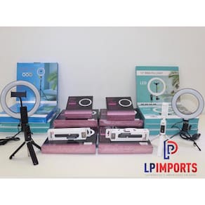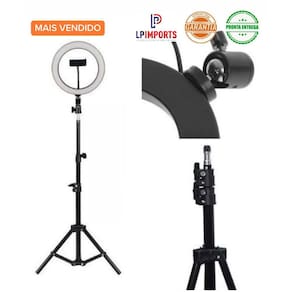 1 Ring Light 12 30 cm ; 1suporte de Celular; 1 Controle de intensidade de iluminação. 1 Tripé ajustável