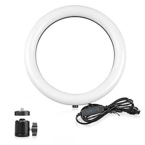 Ring Light Iluminação Profissional 26 Cm Fotografia, vídeo, maquiagem, tatuagem, estética, etc.... Características do Produto: Temperatura de cor de 3000K à 6000K ±200K . Dimmer para ajuste de temperatura da cor quente e fria Dimmer para ajuste de Potência Base articulável 180° Existem dois dimmers para controle de temperatura e de luz Especificações do Produto: Lúmens: 8000lmTensão de Entrada: 5V USB Diâmetro externo: 26 cm 10 polegadas Peso do Ring Light: 450g. Tripé em alumínio: Altura Min.: 0,68cm. Altura Max.: 2,10m. Peso aproximado: 4Kg. Abertura dos pés: 0,83 cm. Contém: - 1 Ring Light de 10 polegadas 26CM - 1 Fonte de energia USB Embutido - 1 Suporte Celular - 1 Tripé de 2 metros