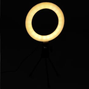 Especificações Ring Light Portátil: Diâmetro : 16 cm. Alimentação: 5v Usb. Tipo: Iluminador. Comprimento aproximado do cabo: 1,90m. Temperatura de cor: 3200k - 5500K ajustável. Ângulo Regulável: Sim. Potência: 10w. Suporte tripé: 15cm.