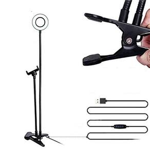 Iluminador Ring Light Suporte Live Stream Celular Controle cor preto Muito Procurado por maquiadores, Barbeiros, fotÃgrafos, Youtubers e etc, este modelo de Ring Light vai te proporcionar a iluminação perfeita para fotografar ou gravar seus trabalhos para rede social ou ata mesmo se o conteúdo for enviado para seu canal do youtube por exemplo. Excelente para criar videos , seja com smartphone ou computador.   Possui configura de matiz e brilho para obter a iluminaÃÃo certa. Basta escolher entre 3 modos de luz e 9 niveis de brilho para os seus usos preferidos - maquiagem, flat lay, fotos de selfie, vlogging de cenÃrios escuros etc. Controles de fÃcil manuseio no cabo para ligar / desligar ou mudar para o modo de iluminaÃÃo que vocà preferir. Pode ser como luminÃria de mesa.  Fotos meramente ilustrativas.  Especificaãães: Modelo: Professional Live Stream Peso: 480g 3 modos de luz branca, amarela e mista e 9 nÃveis de brilho Potencia: 12w Material: AÃo e plástico Abs Cabo usb aproximadamente: 1,20m Altura máxima aproximada: haste ring light 61,5 cm e haste smartphone 34,5 cm Diâmetro aproximado do ring light: 8,5 cm Compatibilidade: Largura máxima aproximada do suporte telefone à de 8,6 cm Conexões: Usb 5V  Itens inclusos: 1 Iluminador ring light com suporte articulado de mesa Live Stream para celular smartphone com controle 1 Suporte para o celular smartphone Marca: W & K IMPORT Marca: Não Informado Ean: 7898324231070