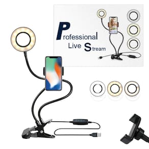 Iluminador Ring Light Suporte Live Stream Celular Controle cor preto Muito Procurado por maquiadores, Barbeiros, fotÃgrafos, Youtubers e etc, este modelo de Ring Light vai te proporcionar a iluminação perfeita para fotografar ou gravar seus trabalhos para rede social ou ata mesmo se o conteúdo for enviado para seu canal do youtube por exemplo. Excelente para criar videos , seja com smartphone ou computador.   Possui configura de matiz e brilho para obter a iluminaÃÃo certa. Basta escolher entre 3 modos de luz e 9 niveis de brilho para os seus usos preferidos - maquiagem, flat lay, fotos de selfie, vlogging de cenÃrios escuros etc. Controles de fÃcil manuseio no cabo para ligar / desligar ou mudar para o modo de iluminaÃÃo que vocà preferir. Pode ser como luminÃria de mesa.  Fotos meramente ilustrativas.  Especificaãães: Modelo: Professional Live Stream Peso: 480g 3 modos de luz branca, amarela e mista e 9 nÃveis de brilho Potencia: 12w Material: AÃo e plástico Abs Cabo usb aproximadamente: 1,20m Altura máxima aproximada: haste ring light 61,5 cm e haste smartphone 34,5 cm Diâmetro aproximado do ring light: 8,5 cm Compatibilidade: Largura máxima aproximada do suporte telefone à de 8,6 cm Conexões: Usb 5V  Itens inclusos: 1 Iluminador ring light com suporte articulado de mesa Live Stream para celular smartphone com controle 1 Suporte para o celular smartphone Marca: W & K IMPORT Marca: Não Informado Ean: 7898324231070