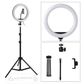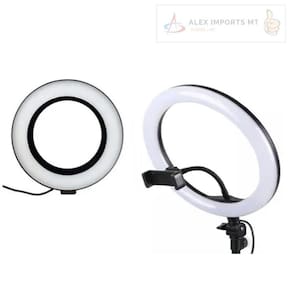 Ring Light Led 10 Polegadas 26cm Com Trípe - A alimentação do iluminador é através de cabo USB. Você pode utilizar um adaptador de tomada de celular para ligar ou conectar no USB do computador ou outro equipamento que forneça 5v USB. Iluminador de LED circular Ring Light permite obter uma luz suave e quase sem sobras devido ao seu formato circular. A luz obtida por esse produto produz resultados espetaculares em tons de peles, tornando-o ideal para fotografia de retratos em que deseja-se destacar a pele, maquiagem, corte de cabelo e etc. Você pode ajustar o ângulo da iluminação por possuir um suporte articulado. É possível controlar as diferentes temperaturas de cores através do controle de ajuste que vai de 3500k à 5500k. - Prenda um suporte de telefone ajustável para liberar suas mãos - Econômico e economicamente eficiente, alimentado por USB 5V - 3 tipos de cores do modo de temperatura: quente, frio, neutro - Também pode ajustar para três temperaturas de cor e, de acordo com o seu favorito, ajustar vários tons - Ajuste suave do brilho e temperatura do brilho com um controle - Sem radiação ultravioleta e infravermelha, baixo calor, segurança completa e respeito pelo meio ambiente - Alimentação: 5v Usb - Comprimento aproximado do cabo: 1,80m - Temperatura de cor: 3200k - 5500K ajustável - Ângulo Regulável: Sim - Peso do Ring: 600g - Peso do tripé: 820g Lembre-se , Tudo que é Barato, Sai caro Segurança e , é aqui : Alex Imports MT Marca: Não Informado Ean: 7898616397873