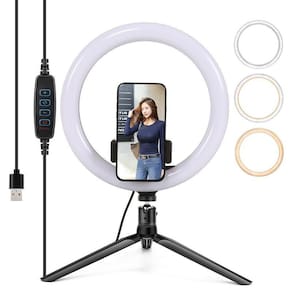 - Iluminador de led 10 polegadas regulável - Equipado com adaptador e controle - 3 cores ajustáveis e 10 níveis de brilho - Perfeito para fotografar maquiagem, produtos de fotografia, beleza, vídeos caseiros e muito mais.