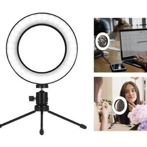 Ring Light Led Mesa Iluminador Pequena Tripé 6 Polegada 16cm Iluminador Ring Light 6 Polegadas 16cm Usb Led 5500k Com Apoio De Mesa Iluminador Ring Light de 16 centímetros (6,5 polegadas), desenvolvido para maquiadores, fotógrafos, cinegrafistas e etc, que buscam uma ótima maneira de iluminar com perfeição. Você pode ajustar o ângulo da iluminação por possuir um suporte articulado. É possível controlar as diferentes temperaturas de cores através do controle de ajuste que vai de 3200k à 5500k. Na frente dos leds tem um filtro difusor para suavizar a luz espalhando a luz com maior uniformidade. A alimentação do iluminador é através de cabo USB (não acompanha adaptador de tomada e não possui bateria interna recarregável), você pode utilizar um adaptador de tomada de celular para ligar ou conectar no USB do computador ou outro equipamento que forneça 5v USB. O cabo USB deverá estar sempre ligado para funcionar. O Ring Light é acompanhado de um apoio de mesa. O apoio também serve para utilizar em outros equipamentos de até 1kg de peso, como projetores, celulares e etc. É recomendado e extremamente eficaz para a macro fotografia, fotografia médica, odontológica, científica, hobby e para a iluminação/fotografia de produções de maquiadores. Fácil de usar, durável e de pouco peso, facilitando o transporte. Especificações:Diâmetro : 16cm (6,5 polegadas)Alimentação: 5v USBComprimento aproximado do cabo: 1,90mTemperatura de cor: 3200k - 5500K ajustávelÂngulo Regulável: SimPotência: 10w Marca: Mrvendas