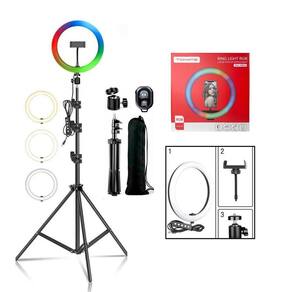 Bem vindos as Lojas Charadas Ring Light Led Tomate Iluminador Portátil 26cm RGB + Tripé 360º + suporte para celular + Shuter Bleutooth Para mudar iluminação o produto é acompanhado com botões que ajusta o tipo de iluminação e a intensidade do brilho. CARACTÉRISTICAS: - Novo estúdio de luz modelo anel de preenchimento. É aplicado em foto ao ar livre, serve para iluminar a casa, retrato, moda, arte de casamento, gravação de vídeo, etc. - Ring Light numero leds : 100 2835 Contas de lâmpada , 24 550 contas de lâmpada - O Anel-em forma de luz vai fazer os olhos mais brilhantes, o que faz com que o retrato fique mais perfeito - Com tripé reforçado com rotação 360º grau a selfie ou vídeo, pode ser feita em qualquer ângulo. - Perfeitos para Youtubers e gravação de vlogs. ESPECIFICAÇÕES: Cor: Preto Diâmetro externo: 26 cm / Diâmetro interno: 20cm Potência: 15W-MAX Voltagem: 110V-220V USB: Cabo de alimentação comprimento 200 centímetros Material: liga de alumínio/ABS Fonte de luz: LED SMD Lâmpadas de LED: 120 pcs Forma: Anel ITENS INCLUSO: 1- Ring Light 26cm RGB / 10 polegadas Tomate 1- Adaptador de celular pode ser na vertical ou horizontal 1- Adaptador Ball Head 1- Tripé Reforçado 0,65 - 2,1m 1- Shuter Bluetooth 1- 90 dias Marca: Não Informado