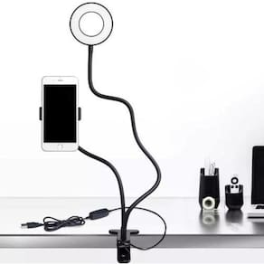 Ring Light + Suporte Celular Selfi Luminaria Abajur Youtuber Cor: Preto Você sempre sonhou assistir séries no Netflix sem cansar seus braços