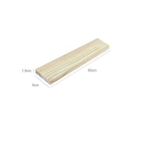 Altura1,8cmComprimento60cmProfundidade9cmPeso SuportadoDepende da finalidade ou do suporte para fixá-laMaterialMadeira maciça de pinus de reflorestamento.AcabamentoMadeira natural crua, lixada e lisaNecessita Montagem?A Cubomob não realiza a instalação do produtoFerramenta Necessárias